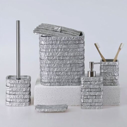 Stone 5 Parça Banyo Seti Gümüş – Banyo Aksesuar Seti – Banyo Seti